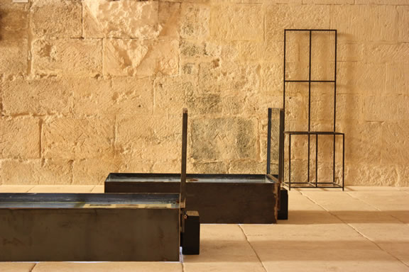 A l'Abbaye de Silvacane, lors de ma première visite pour commencer à préparer cette exposition, face à la hauteur des murs, la présence impressionnante de la lumière et le poids du silence de la salle du réfectoire de l'Abbaye, mon premier ressenti artistique s'est dirigé de façon très intuitive vers le sol.