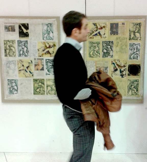 Art is History. It must mark time and memories. This can be seen in the comeback of the myths, those stories created before History. Through mythical artists, whom fates have been amplified by the collective imagination, I build my plastic reflexion. Thanks to gluing and transferring I can insert iconographic documents from their artworks and start a dialogue between those and my drawings, my engravings, my monotypes…