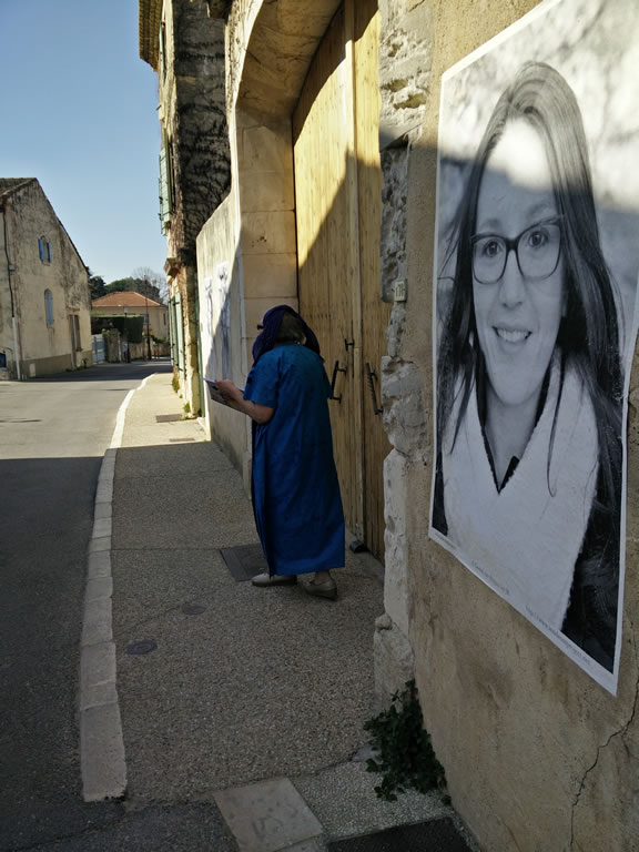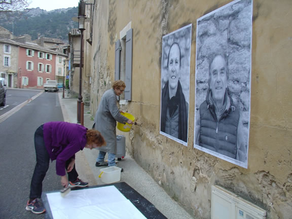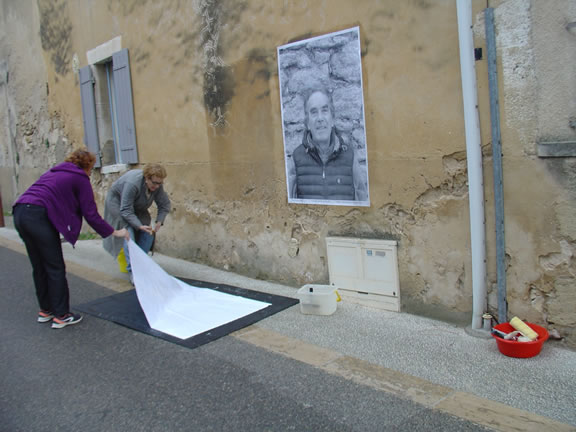Portraits from Robion's inhabitants will be printed and displayed on the town's streets on a determined path which will link portraits and poems to create an innovative presence and promote change to start a "plastic/visual" and poetic conversation